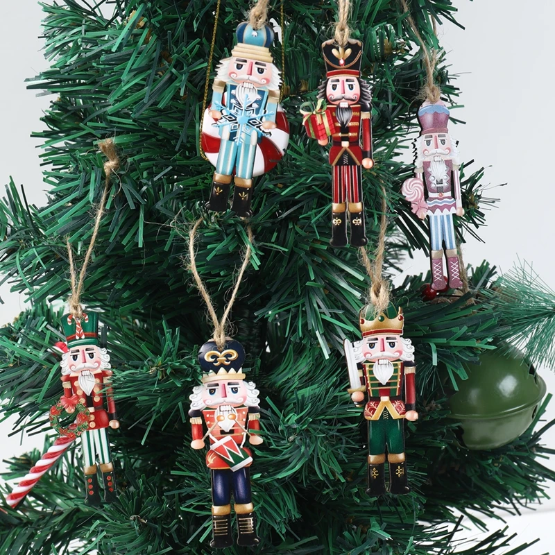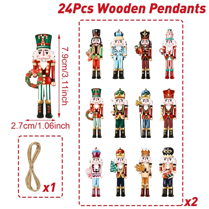 24pcs Christmas Nutcracker Soldier Wooden Pendant Xmas Tree Hanging Ornament 2025 Navidad Decoration for Home 2026 New Year Gift