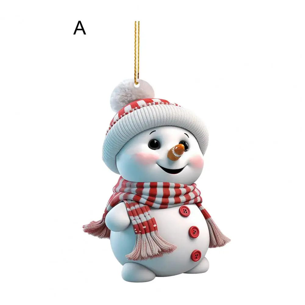 Christmas Snowman Pendant Hanging Ornament with Lanyard Cartoon 2D Acrylic Pendant Xmas Tree Decoration Cars Accessories