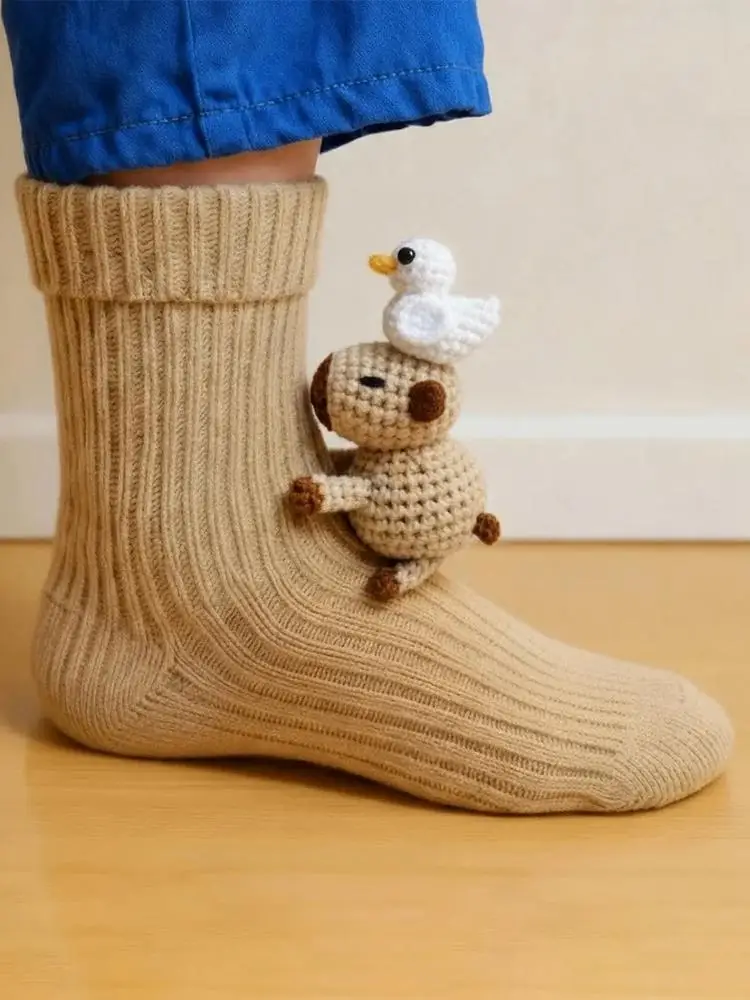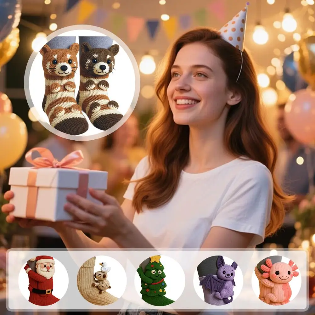 1. Feature intricately knitted 3D patterns that bring adorable animal characters to life. These detailed creations add playful accents to your daily wardrobe while sparking joy with every wear.